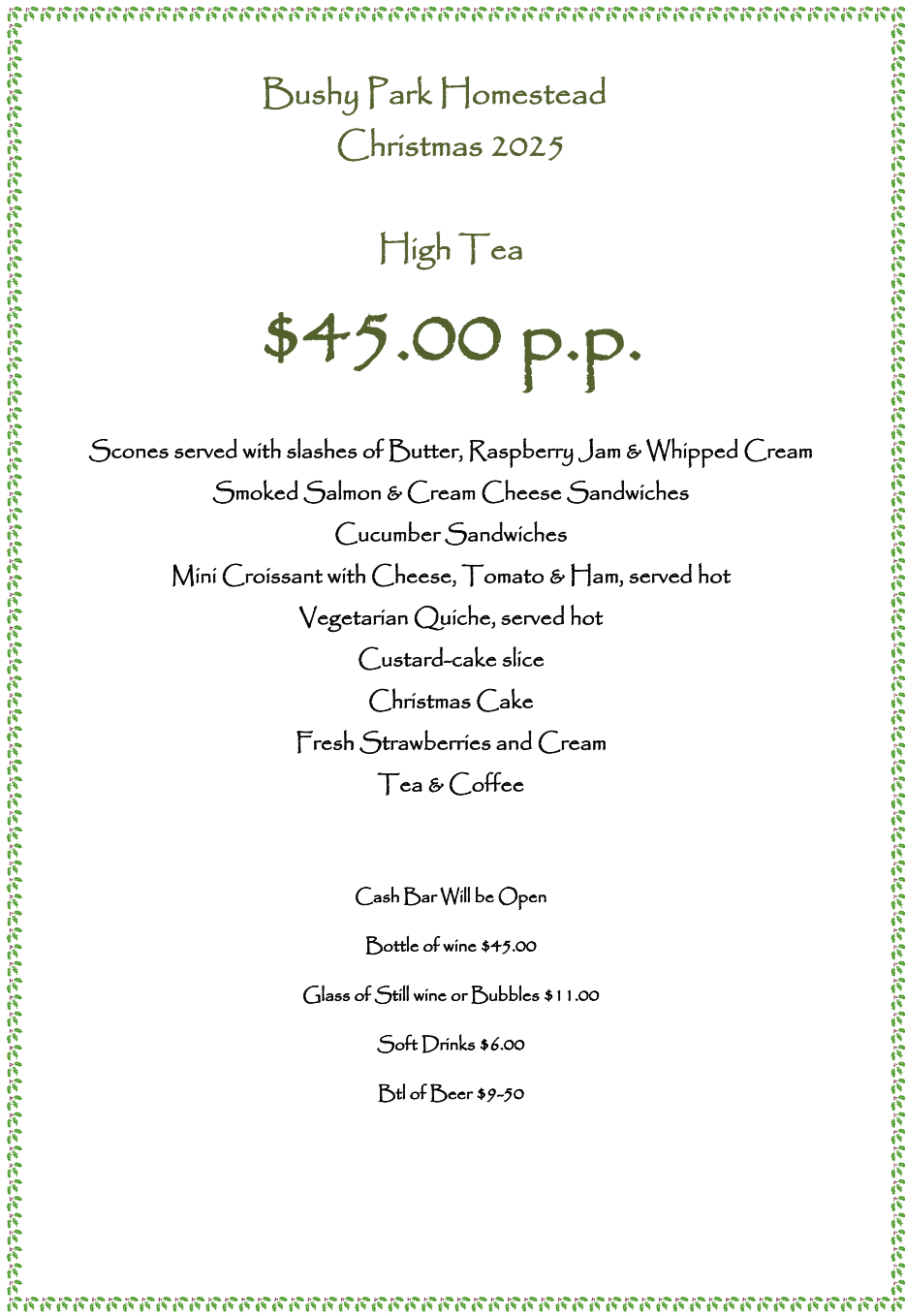 The Homestead is open for group bookings of 10 to 60 guests for any day-time function.